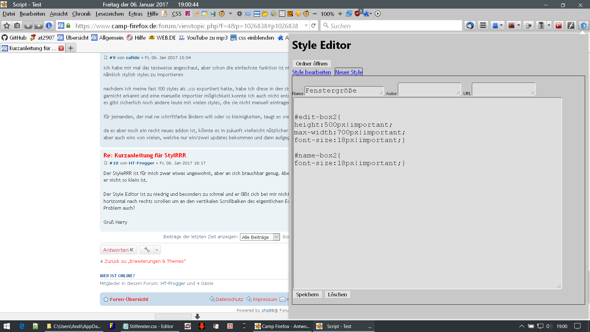 Der Style Editor ist zu niedrig und besonders zu schmal und er läßt sich bei mir nicht in der Größe anpassen. Ich muß ein Stück horizontal nach rechts scrollen um an den vertikalen Scrollbalken des eigentlichen Editorfensters ran zu kommen. Habt Ihr das Problem auch?