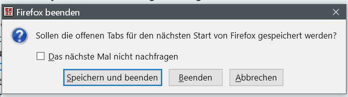 • 3 Tabs wurden bei jedem Neustart von FF agezeigt. Mitteilungen von Tab Mix Plus und NoScript und meine Startseite/Suchmaschine http://www.metager.de