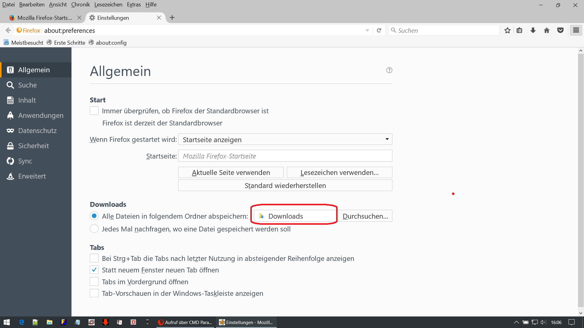 Nun möchte ich gerne durch das ausführen eines CMD´s diese Datei mit dem FireFox runterladen. Allerdings ohne jeglichen manuellen Schritt. Ich möchte gerne, dass diese Datei in den Ordner X heruntergeladen wird, ohne das der Anwender eine Abfrage zum Speicherort oä erhält.