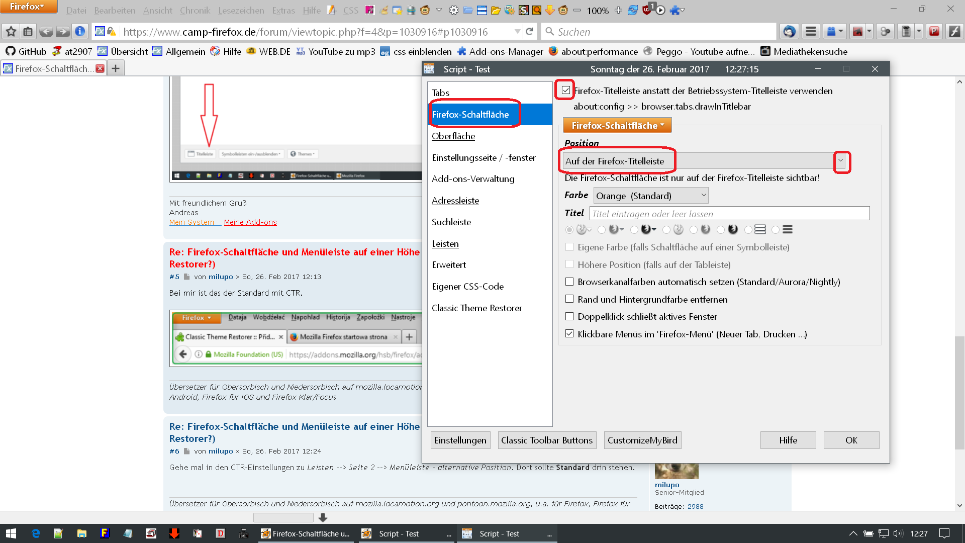 2. In CTR-Einstellungen: Firefox-Schaltfläche --> Position --> Auf der Firefox-Titelleiste