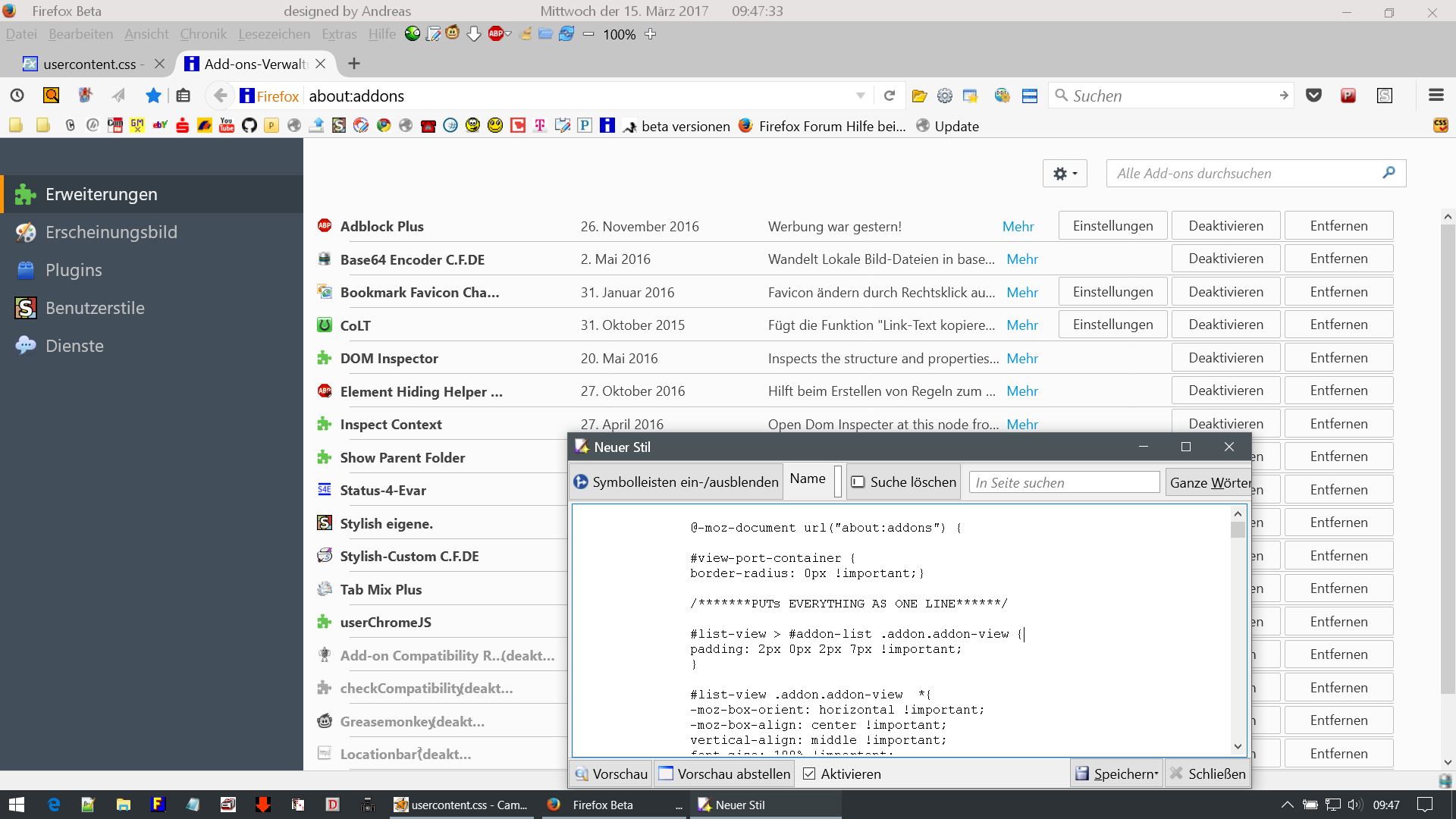 Ein Teil meines Stylish-Codes für den AddonManager, der auch noch von CTR beeinflusst ist....CSS