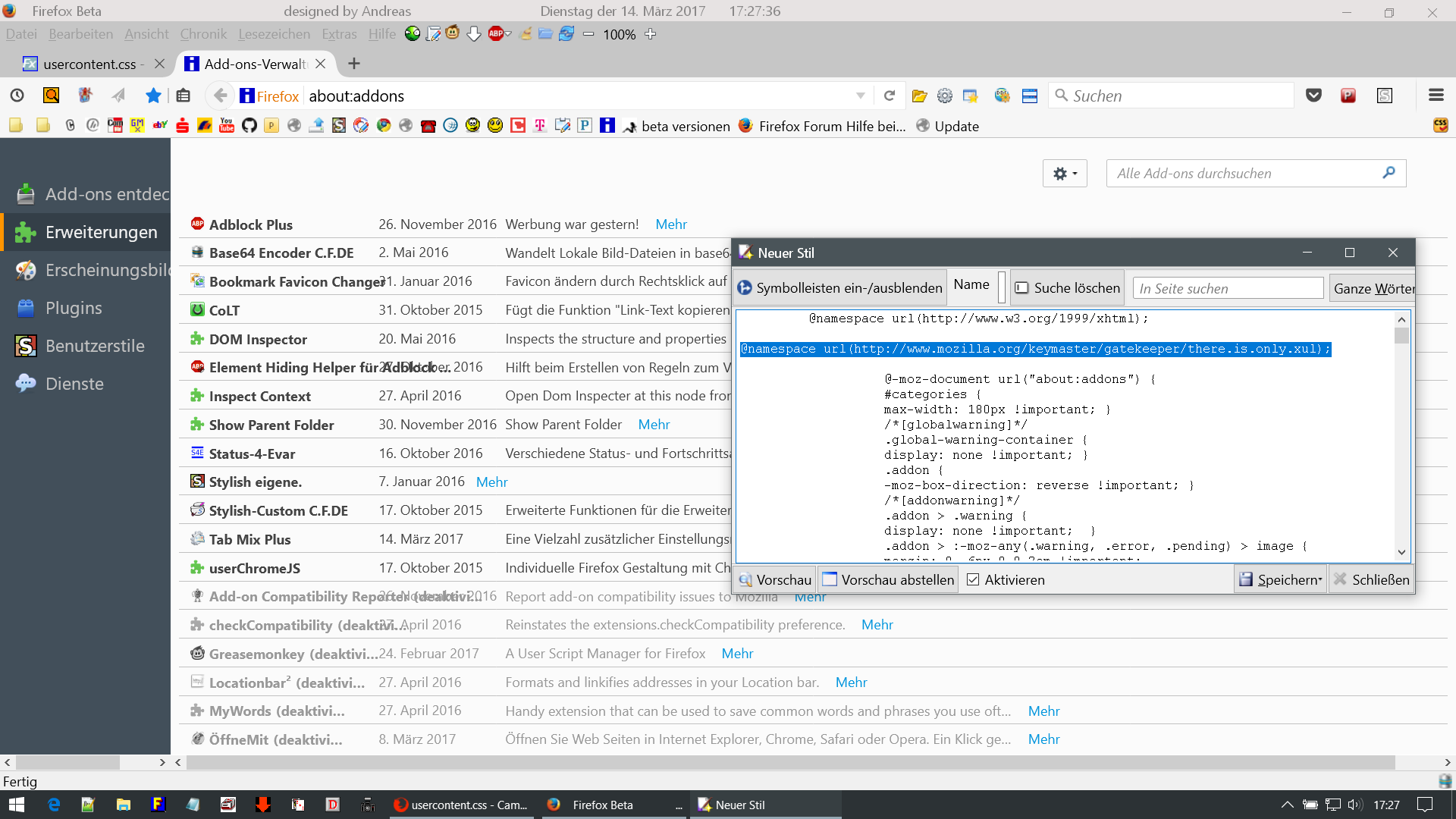 Bevor ich neue css-scripte verwende, hier der code meiner usercontent.css mit der Bitte um Prüfung: