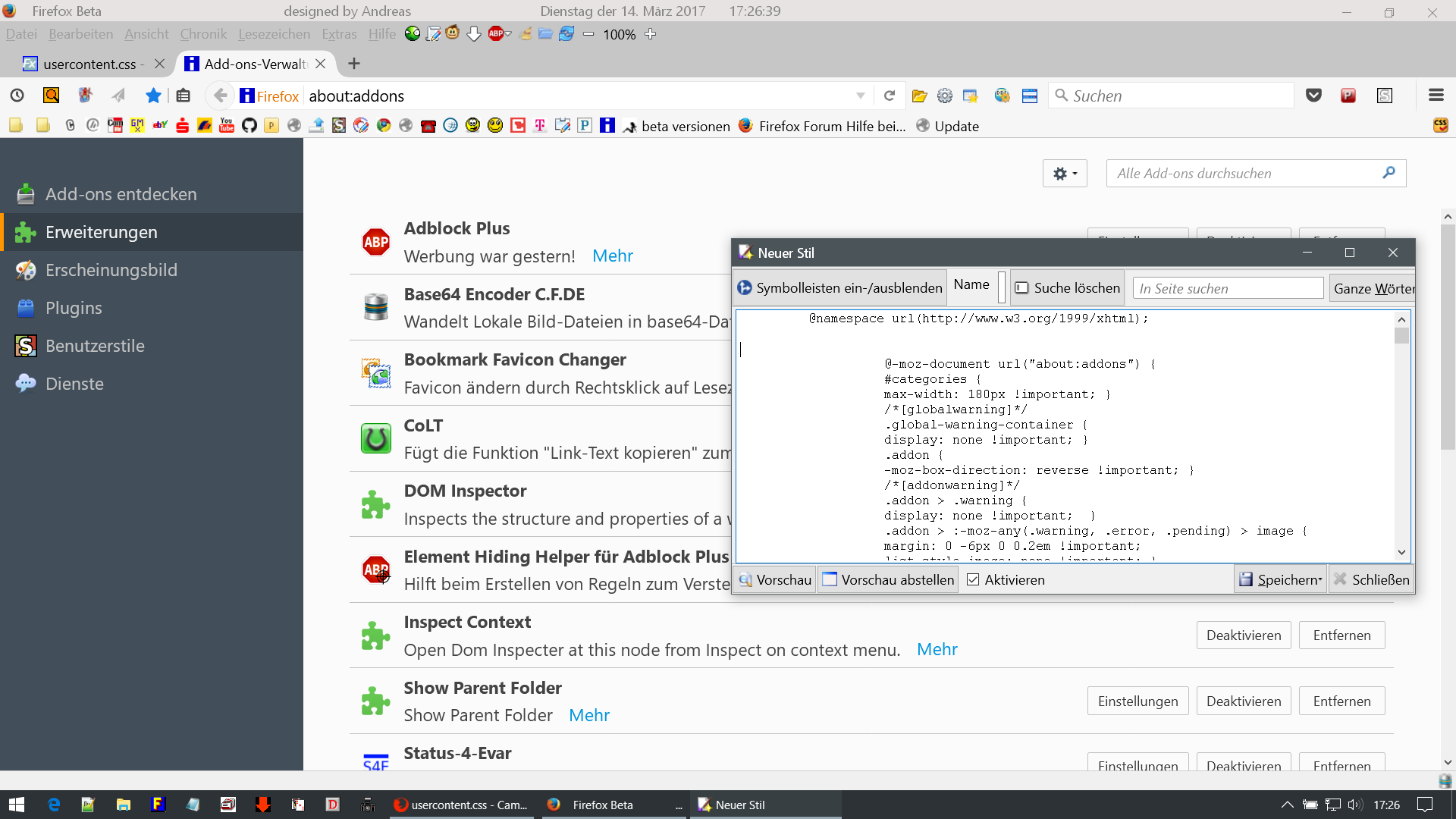 Bevor ich neue css-scripte verwende, hier der code meiner usercontent.css mit der Bitte um Prüfung: