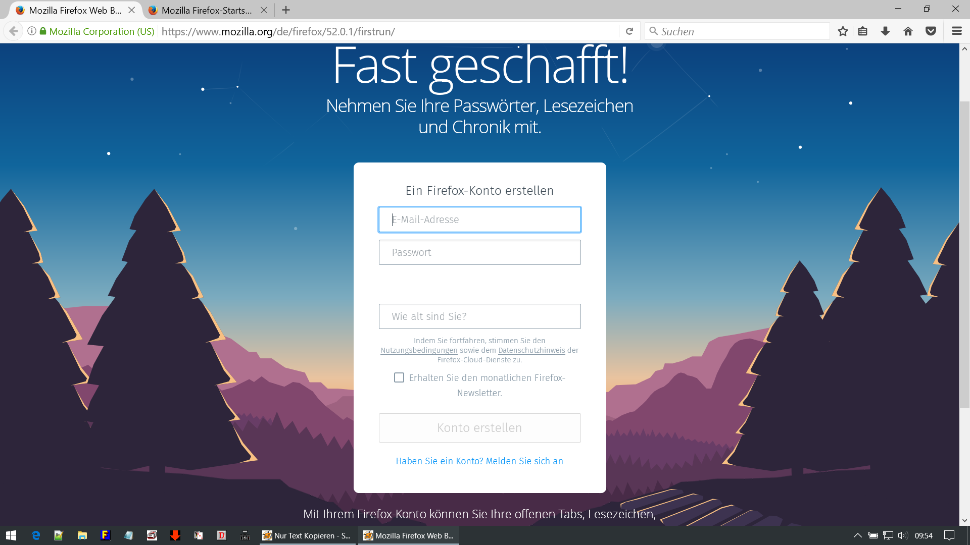• Das ist schon klar. Aber das Formular ist ja zum Anlegen eines Kontos da. Mit dem Anmelden war schon der zweite Schritt, ja. Aber ich lege grundsätzlich kein Konto an. Und ich bilde mir ein, dass diese Seite nur beim allerersten Start mit Default-Profil erscheint, das ich ja nie verwende. Ich werde langsam alt.