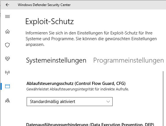 • Habe da mal nen Link rausgesucht, was den Exploit-Schutz und seine Optionen angeht. Alles recht easy ;) Also ehrlich, welcher "normale" Benutzer (speziell einer S, N oder Home Version) soll damit klar kommen ? :-???:?https://docs.microsoft.com/de-de/windows/…loit-protection