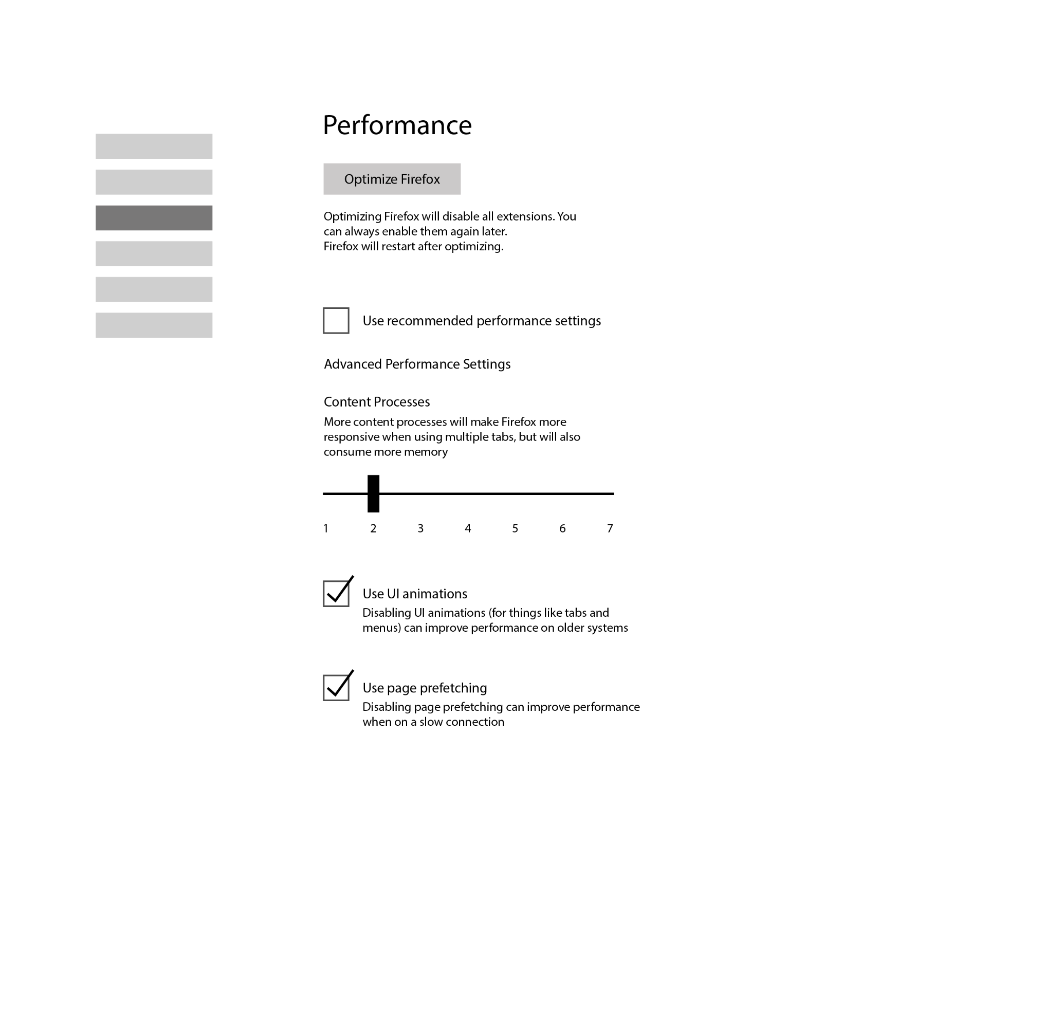 • Ich finde es etwas seltsam dass man dem User eine Option für die Anzahl der Contentprozesse geben möchte. Sollte Firefox nicht selbst entscheiden, mit welche Prozessanzahl es auf der ausführenden Hardware am besten läuft?