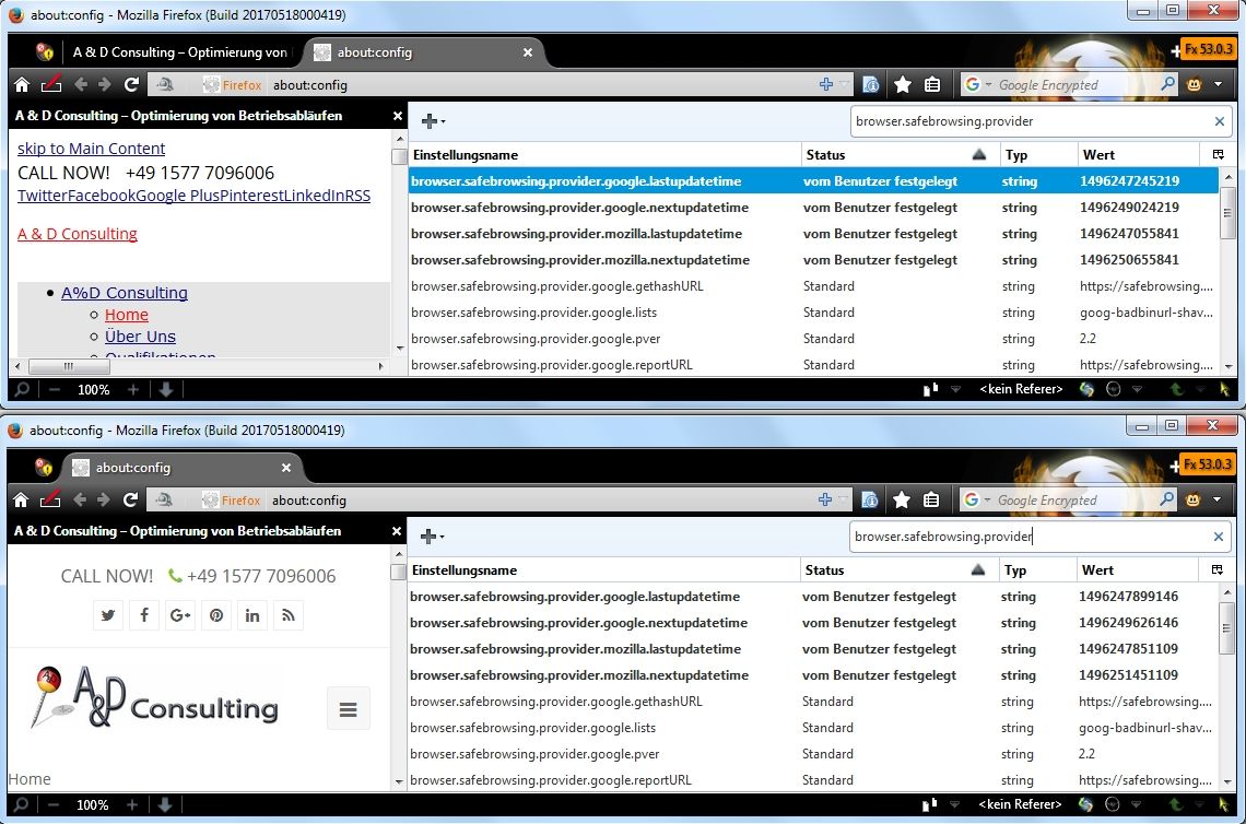 Werde wohl den Punkt "Gefährliche und betrügerische Inhalte blockieren" dauerhaft aus lassen müssen.