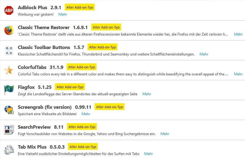 Das Update auf die Version 55 des Fuchses deaktiviert diese und markiert sie als Alter Add-on-Typ