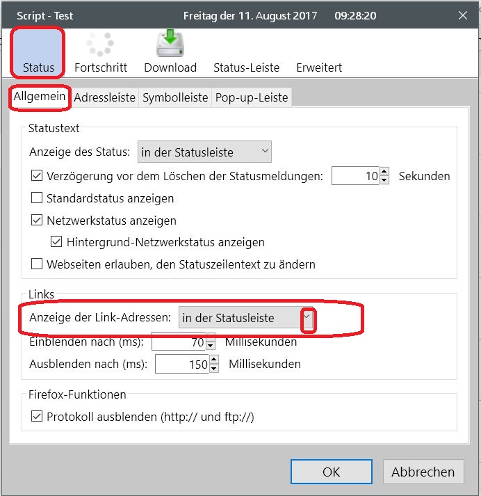 ohne Add-on gibt es auch keine Statusleiste. Welches Add-on nutzt du denn dafür?