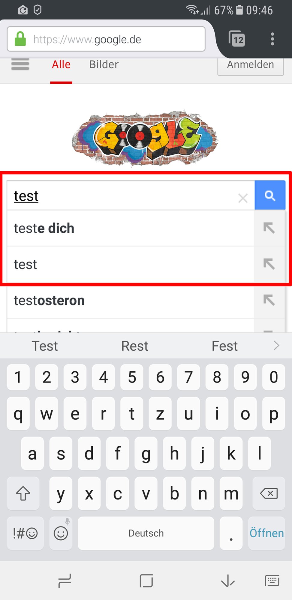Mit dem Samsung Browser und auch Chrome werden die Suchvorschläge ebenfalls von vornherein angezeigt.