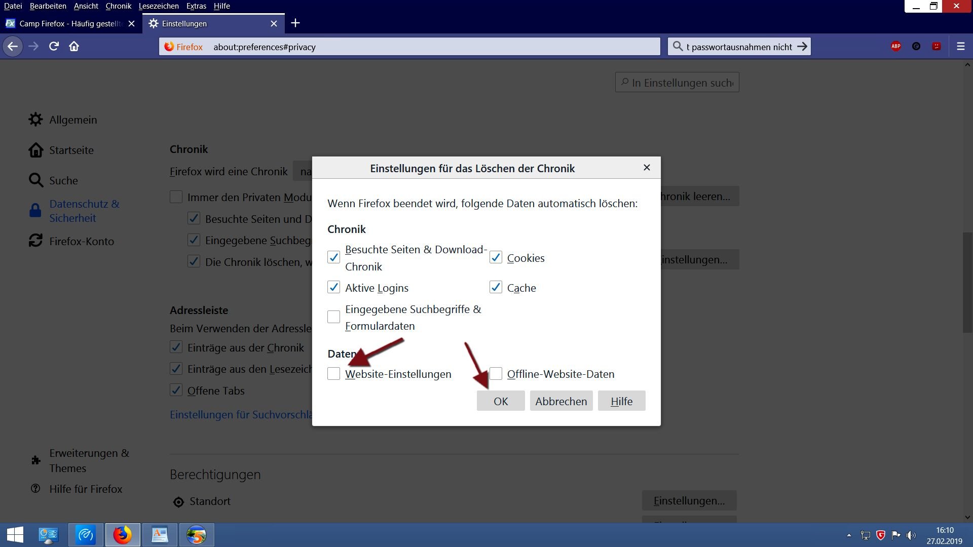 In den Einstellungen sind in der entsprechenden Liste keine Webseiten hinterlegt. Trage ich dort manuell etwas ein, wird es vermeintlich gespeichert, aber nach dem Schließen der Einstellungen ist das dann auch wieder weg.