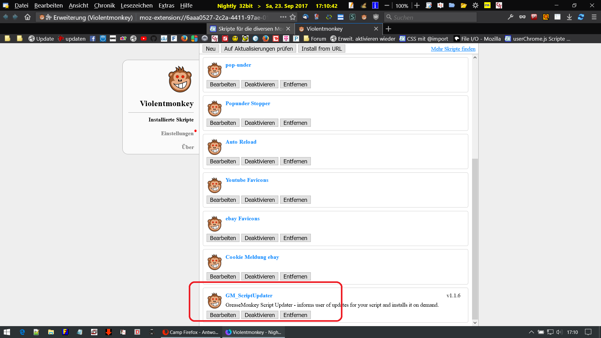 @ ViolentMonkey: Dieses ist derzeit installiert, zeigt aber nicht alle Scripte, ein Test mit Tampermonkey verlief ergebnislos, da ich dort nicht in das Einstellmenü gelange, in dem ich die Scripte einfügen kann... ich teste noch mal...
