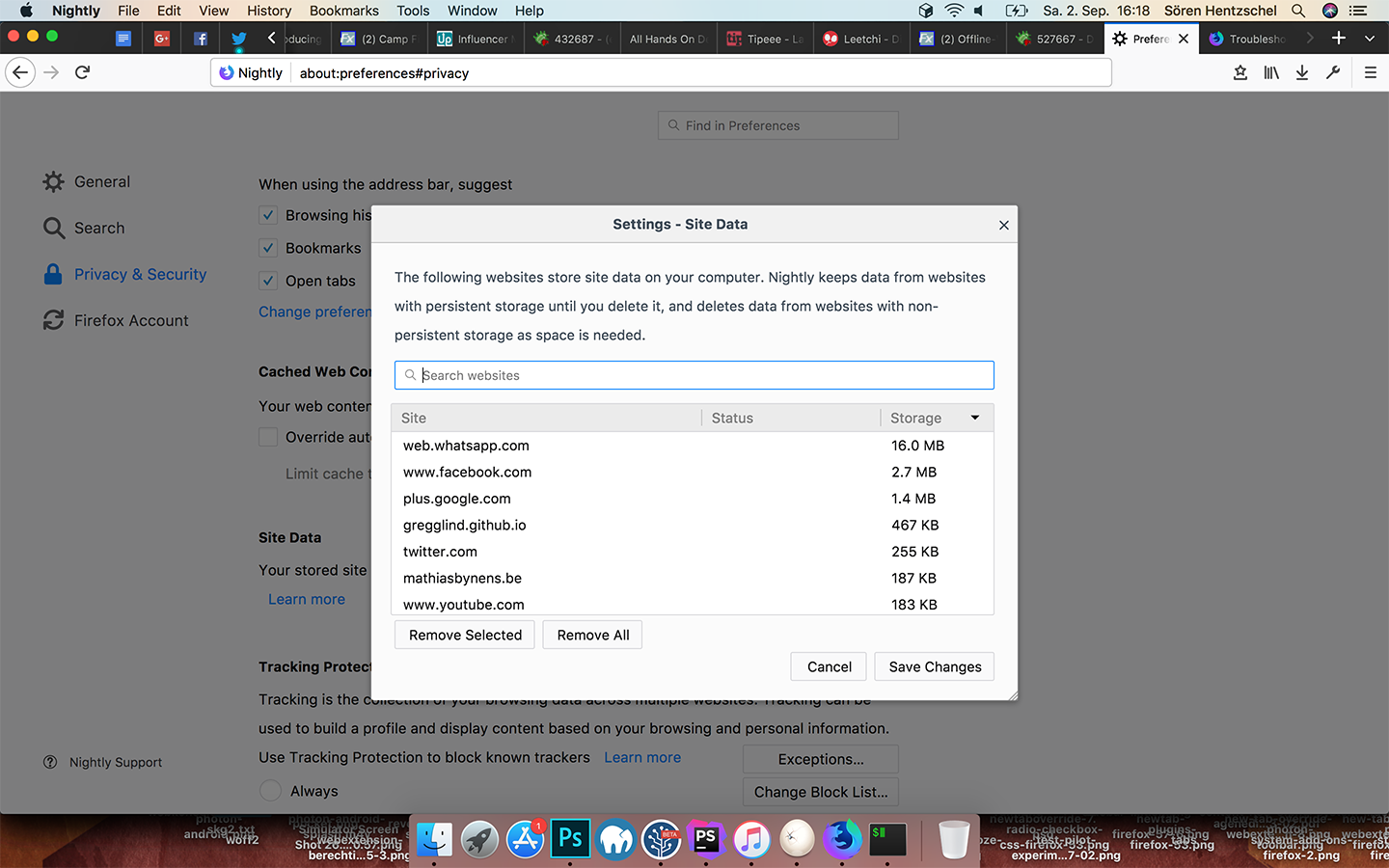 ich verstehe sowieso nicht, warum einige websites (mega.nz, bild.de, gmx.de, twitter.com etc) Daten in diesem "storage" Ordner hinterlegen müssen. Ich lösche die Dateien mittlerweile nach jedem Firefox-Schließen.