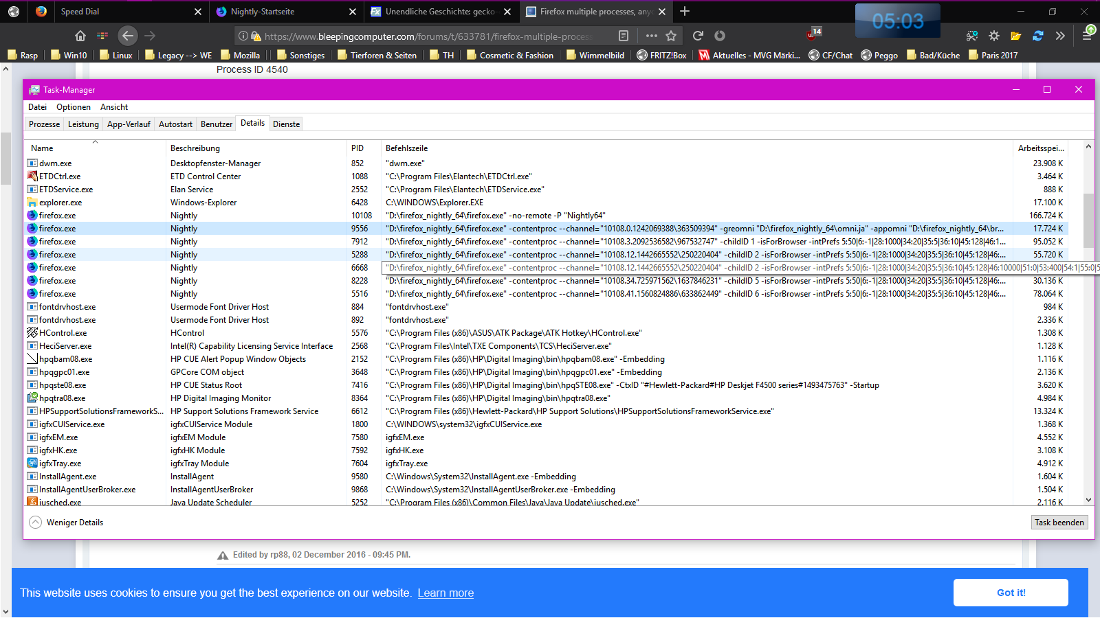 anbei habe ich mal ein Screenshot gemacht. Du musst (bei Windows) im Taskmanager im Tab Details die Spalte Command(Befehlszeile) aktiviert haben. Dann kann man betreffende Einträge finden, wenn man sie dann hat ;)
