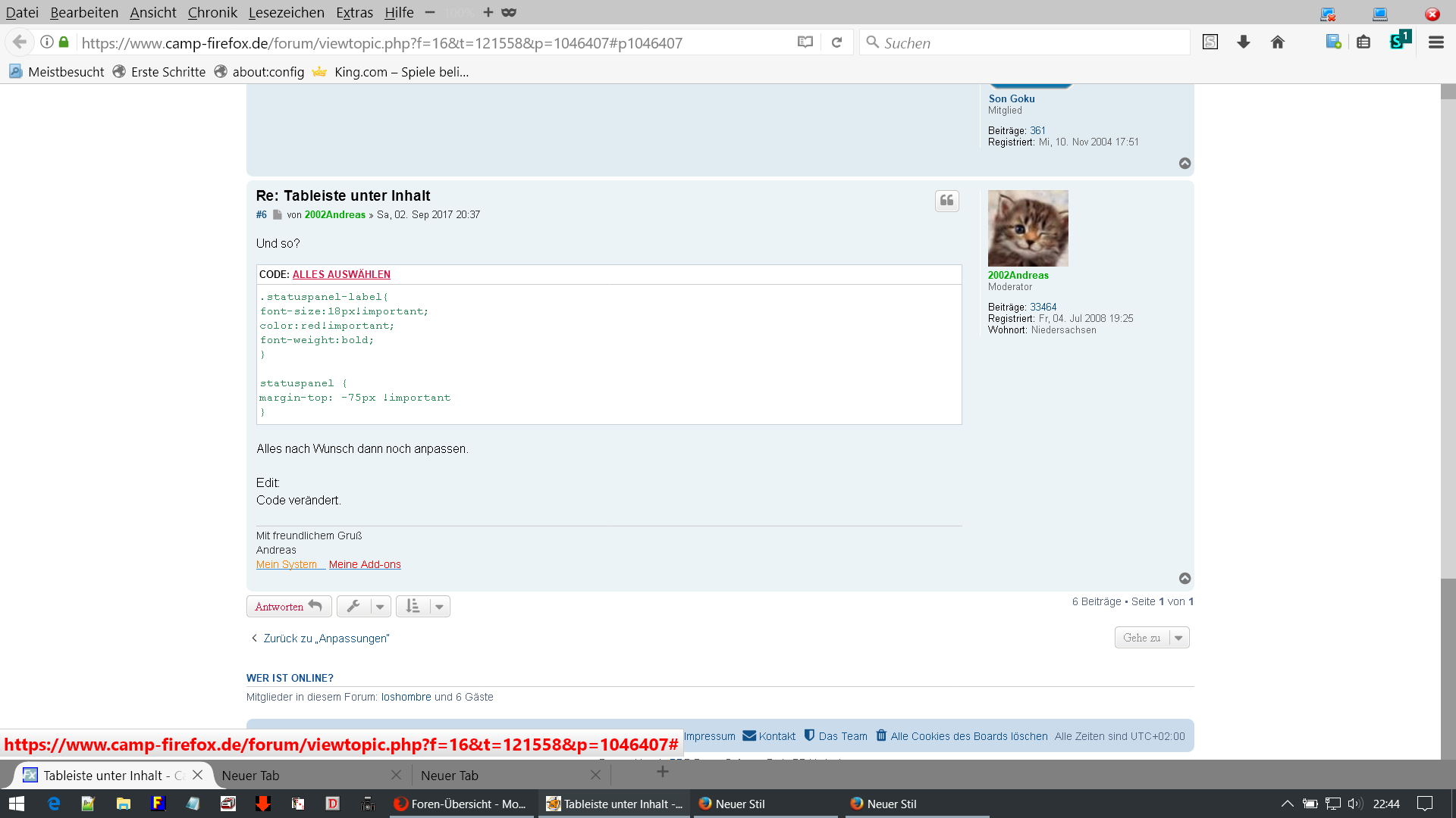 Jetzt ist ein kleines Problem da und zwar der Infotext liegt direkt auf die Tabs ?