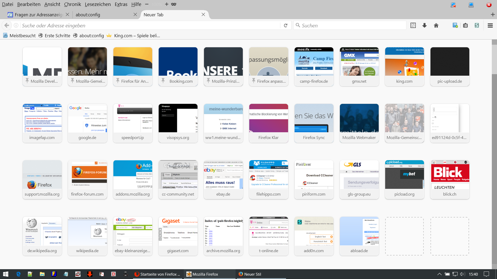 wegen Anpassen der der Startseite schau hier einmal https://support.mozilla.org/de/kb/neuer-ta…ten-von-kacheln