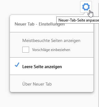 Im Normalfall hast Du auf der newtab-Seite ganz rechts ein Zahnrad. Ein Klick darauf öffnet die Einstellungen.