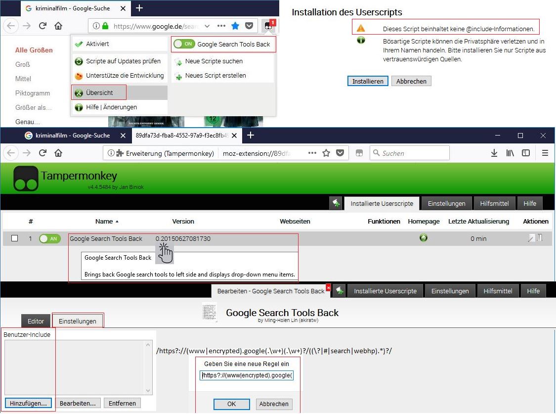 03 Ich wollte gerne die Vorteile von Google ohne Script behalten - siehe Screenshots.