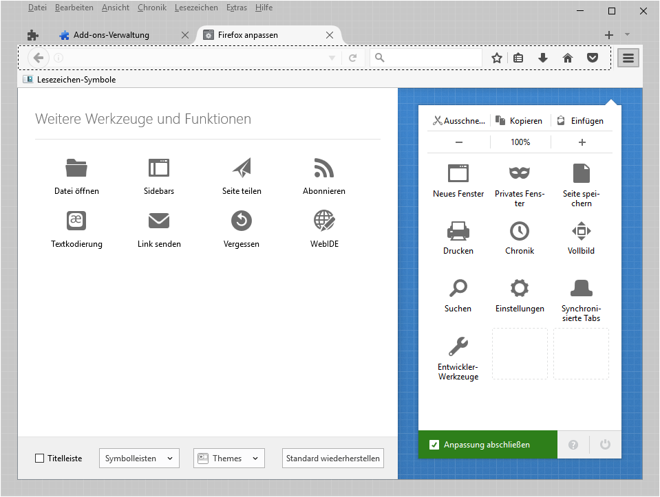 Ich sehe immer noch keinen Button. Allerdings ich weiss nicht, ob ich die Add-On-Leiste separat einblenden muss - wie geht das?