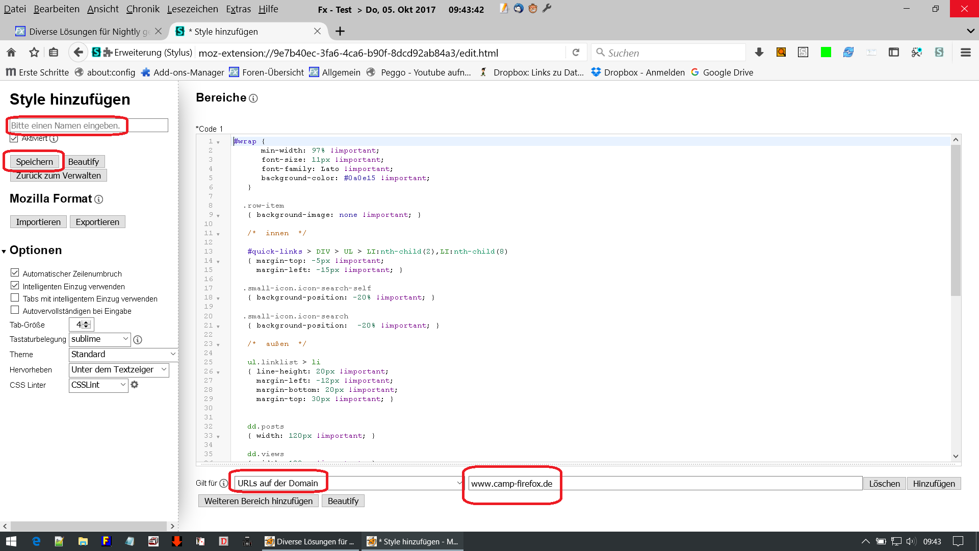 Mit dem AddOn Stylus kann ich ehrlich gesagt gar nichts anfangen. Völlig unübersichtlich und schlecht zu bedienen, selbst ein neu erstellter Code erfüllte nicht seinen Zweck.