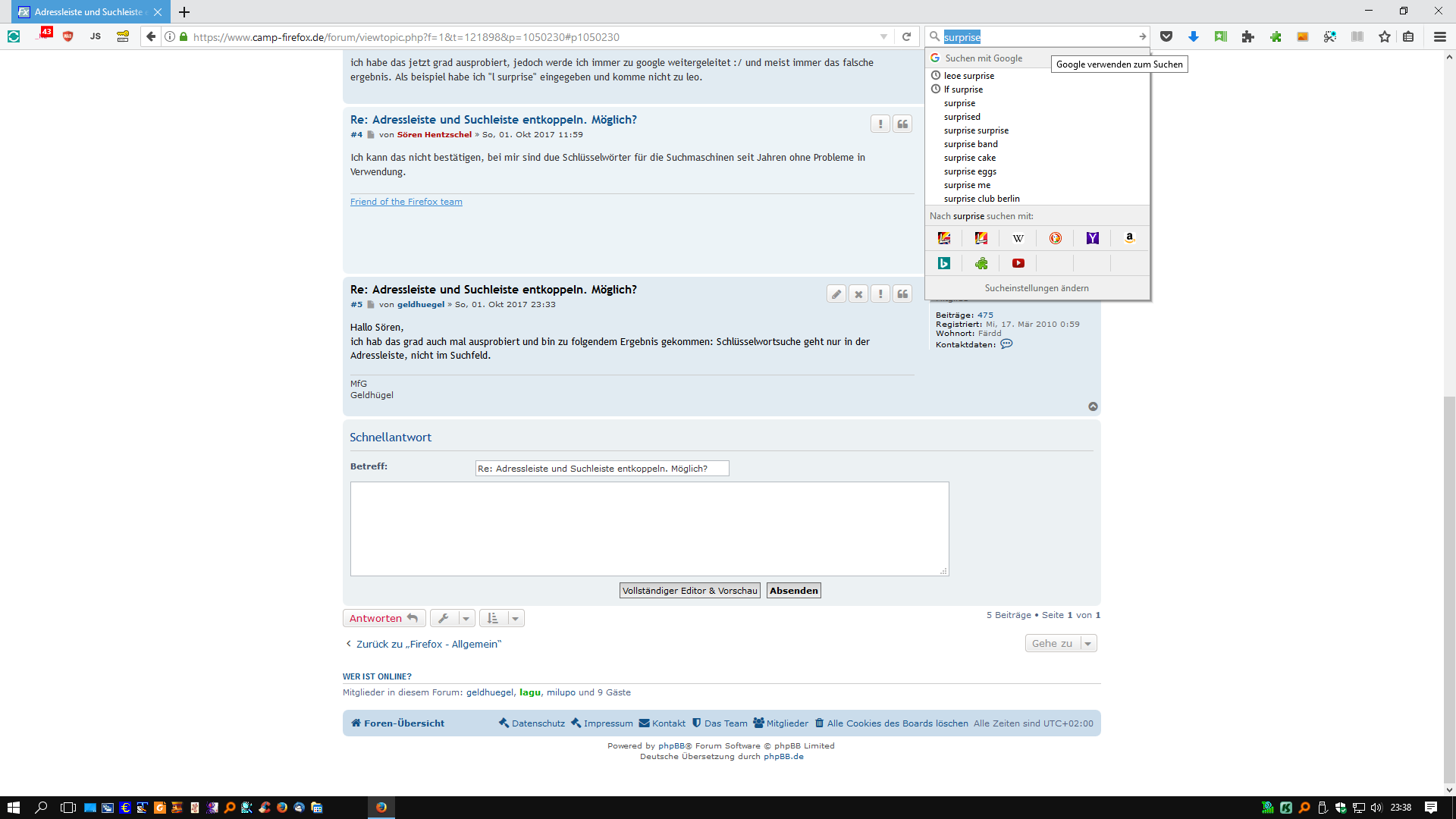 Adressleiste und Suchleiste entkoppeln. Möglich?