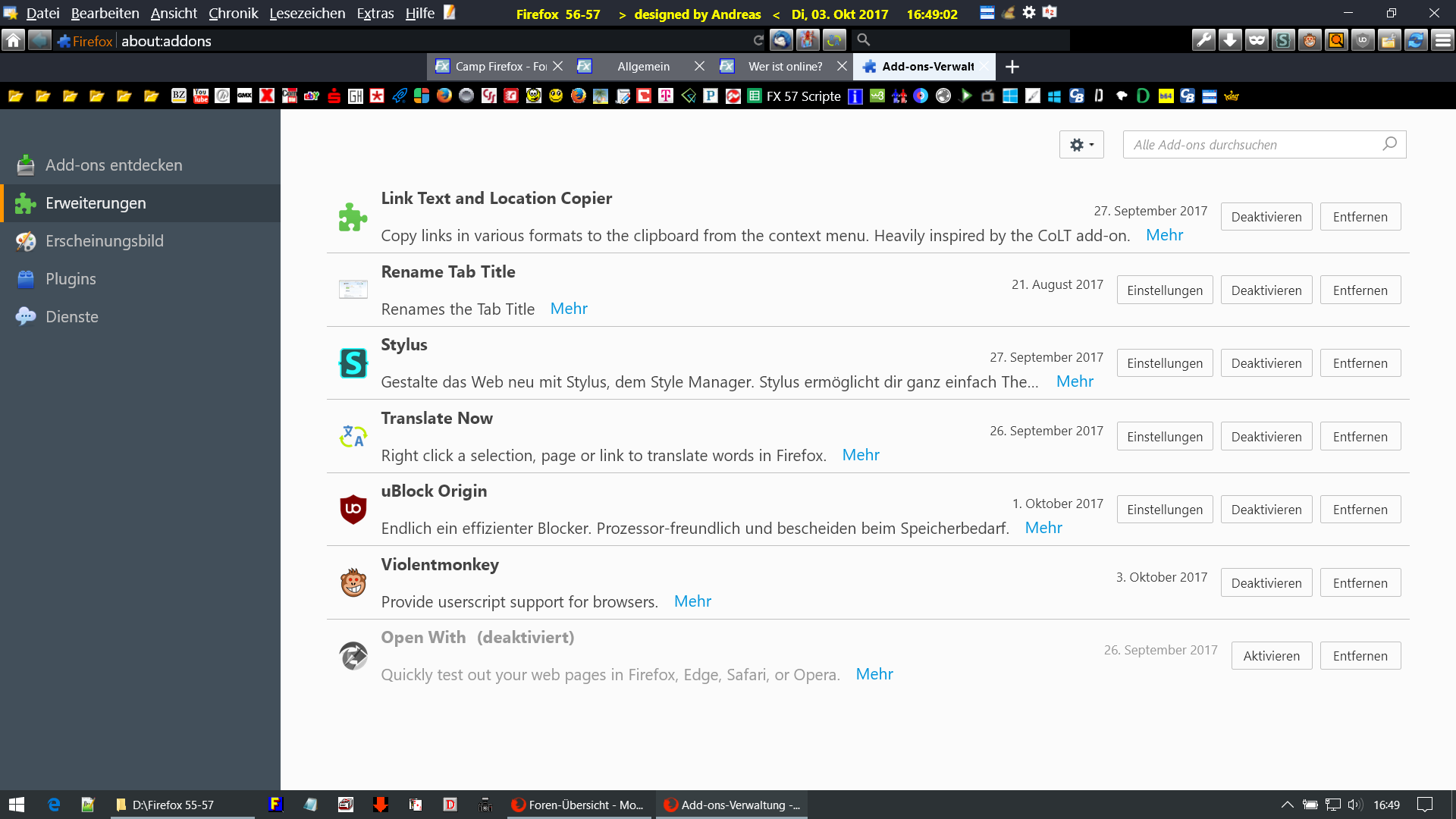 Anbei die Liste meiner Add-Ons: