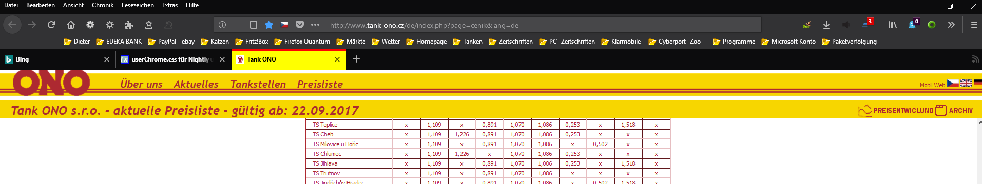 Fehler, die in der userChrome.css enthalten sind sollten von erfahrenen Usern verbesserrt werden (ich bin totaler Laie und habe manche Style-Anweisungen von älteren FF übernommen - mache diesen Firlefanz erst seit 2 Tagen).