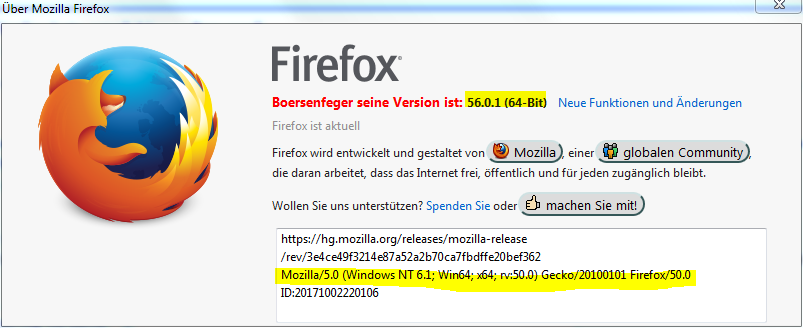 Stimmt, das meinte ich ja. Wie z.B. nun Windows 10 und Firefox 54; deshalb verstehe ich die obigen Beiträge nicht so ganz, bzw. kann nicht nachvollziehen, was das mit dem Useragent auf sich haben soll??