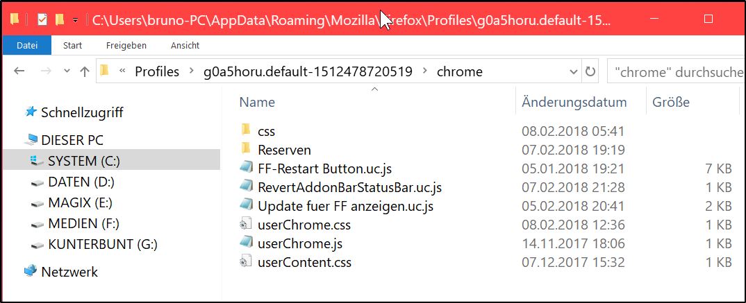 Anfangs, die ersten 3-4 mal startete ich Firefox neu, dann hatte ich dieses Leerfeld wieder für einmal. Anschliessend beendete und startete ich nur das Anpassen neu, mit dem selben Effekt. Irgendwann hatte ich das Leerfeld dann immer.