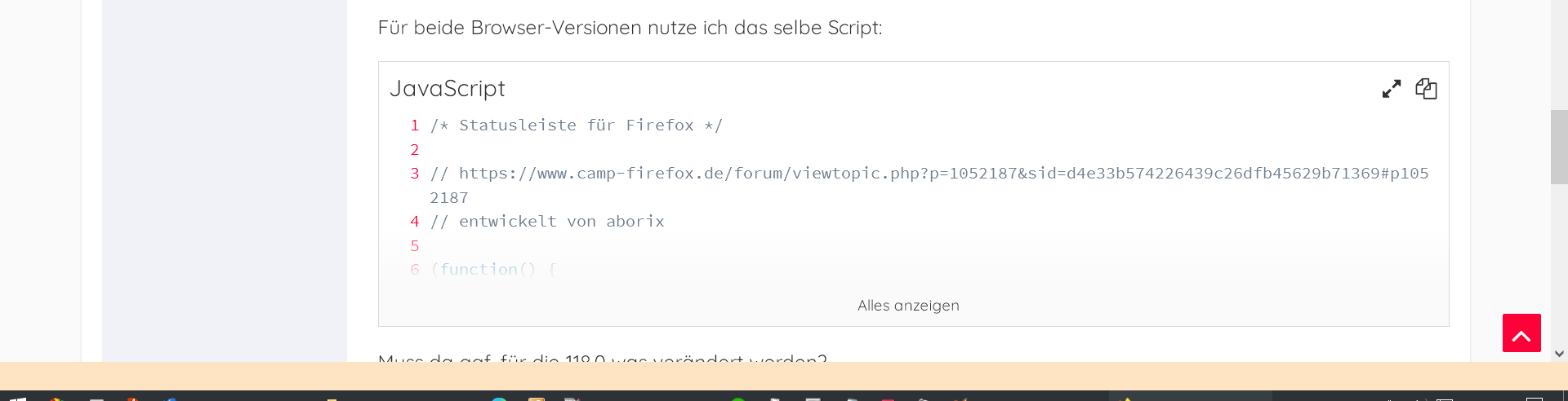 • Moin, mit der Version 118.0 funktioniert das Script der Statusleiste nicht mehr korrekt. Diese wird zwar angezeigt aber am falschen Platz..