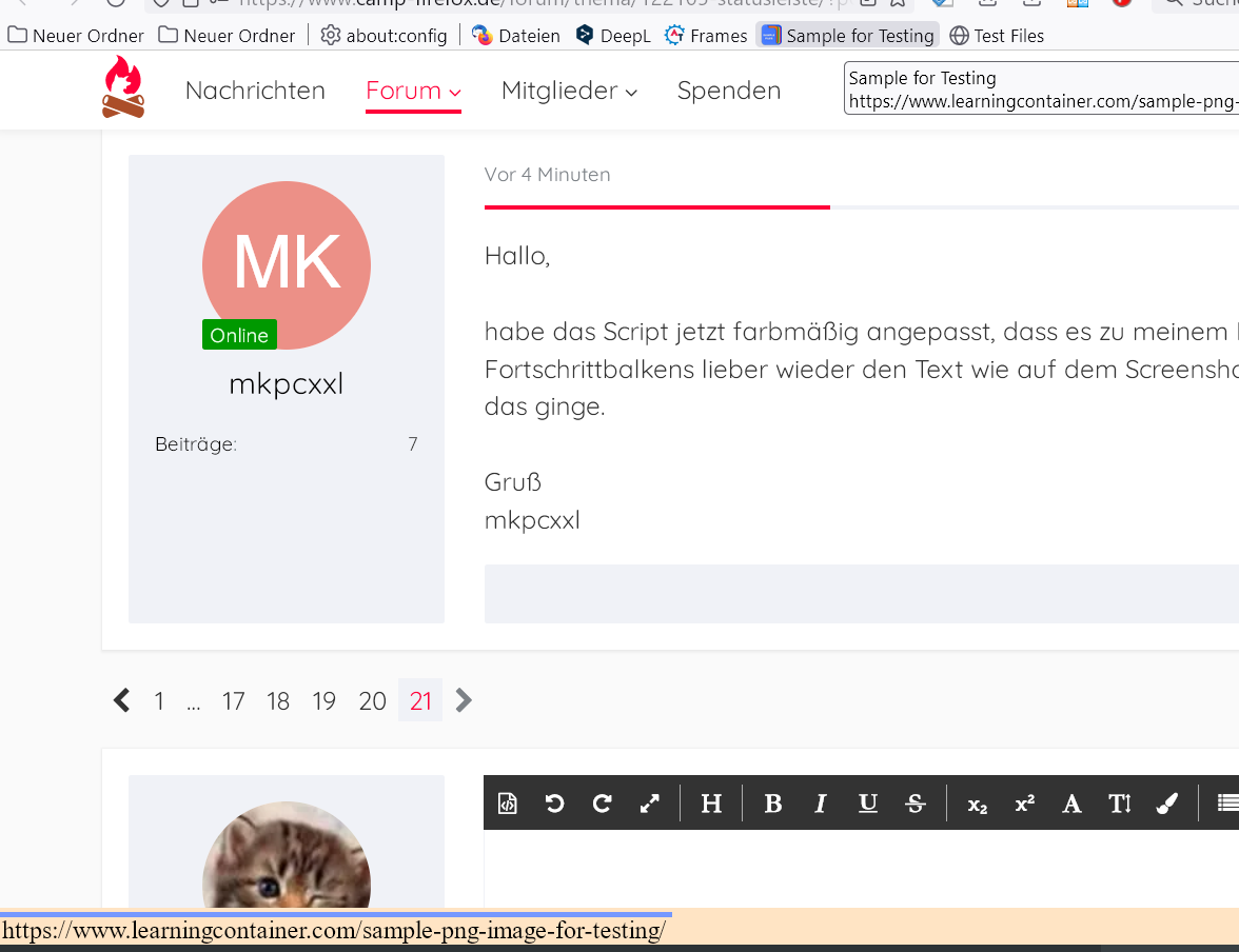 Mit einer leeren userchrome.css und ohne eine usercontent.css ging es dann ohne Probleme und aktuell ist zumindest bei der Leiste alles wie gewüscht. Danke dafür ![]()