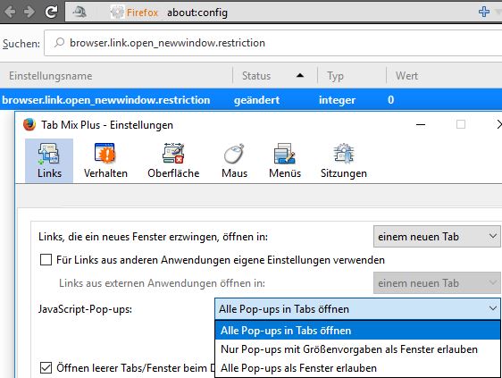 • Ich habe den Firefox im abgesicherten Modus gestartet. Das scheint ein Youtube-spezifisches Problem zu sein.Von anderen Seiten, die mir bekannt sind, und wo auf einen neuen Tab verlinkt wird, da geht alles wie seither immer.