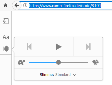 Im FF 64 Bit V. 56.0 fehlt in der Leseansicht der Button, um sich den Inhalt per TTS vorlesen zu lassen. In der portablen Version 32 Bit V. 56.01 ist der Button noch enthalten - Vorlesen funktioniert.