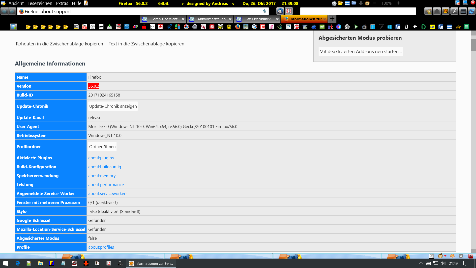 about:support = Fehlanzeige, nur gekürzt.