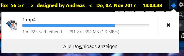 Wenn ich ohne sie einen Download starte wird der Downloadpfeil animiert. Klicke ich ihn an öffnet sich das kleine Popup.