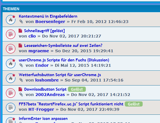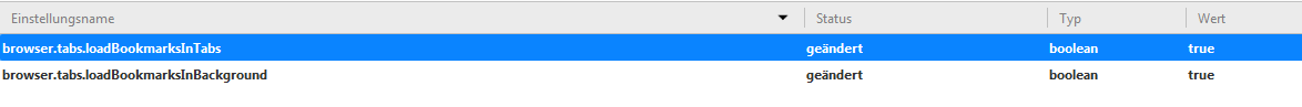 Klicke ich mit links auf einen Eintrag, öffnet sich kein neuer Tab im Hintergrund, wie gewünscht.... aus der Lesezeichensidebar öffnet sich mittlerweile ein neuer Tab..