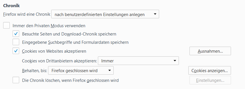 ich nutze den Evernote WebClipper für Firefox und folgende Einstellungen für Cookies: