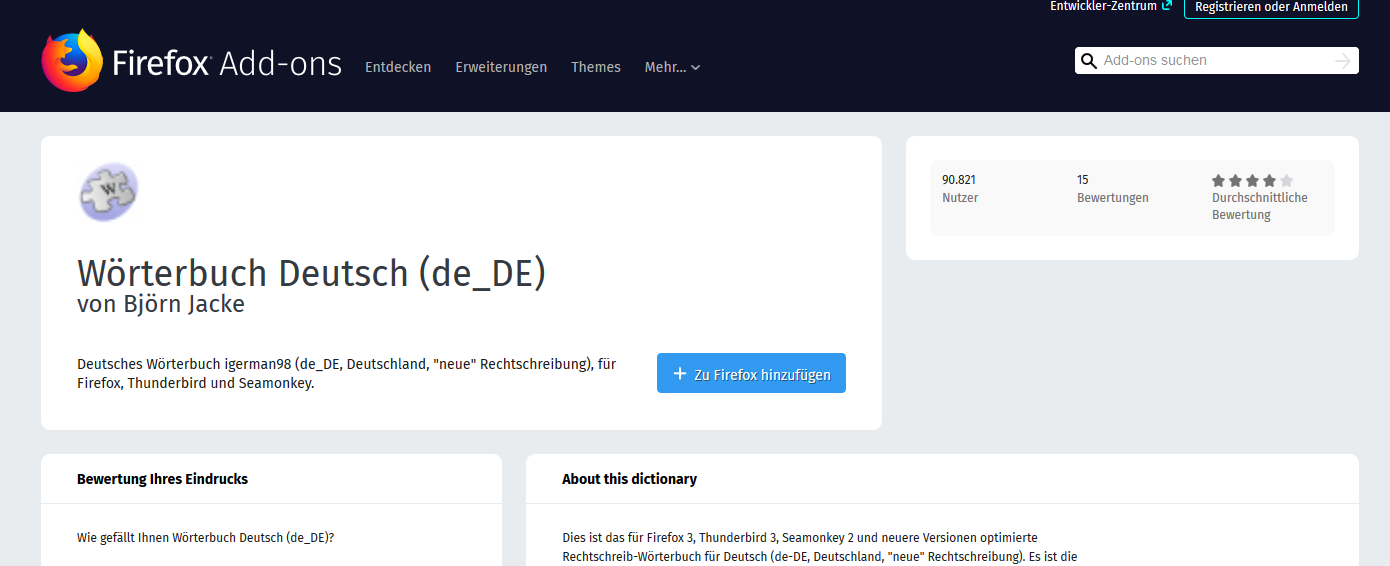 So ganz versteh ich das hier nicht, denn wenn ich auf der neuen AMO Seite im Suchfeld "Wörterbuch" eingebe werden doch reichlich deutsche Wörterbücher angezeigt.