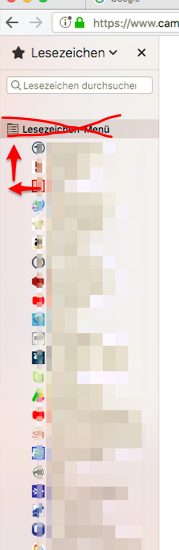 ... hat auch die Überschrift "Lesezeichen-Menü" entfernt und die Lesezeichen an sich dann nach links geschoben, sodass sie auf der selben Höhe waren wie das Icon vor "Lesezeichen-Menü".