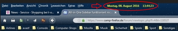 Hatte vorher die Erweiterung userChromeJS und ein einziges Script laufen welches das Datum und die Uhrzeit neben der Menüleiste anzeigte.