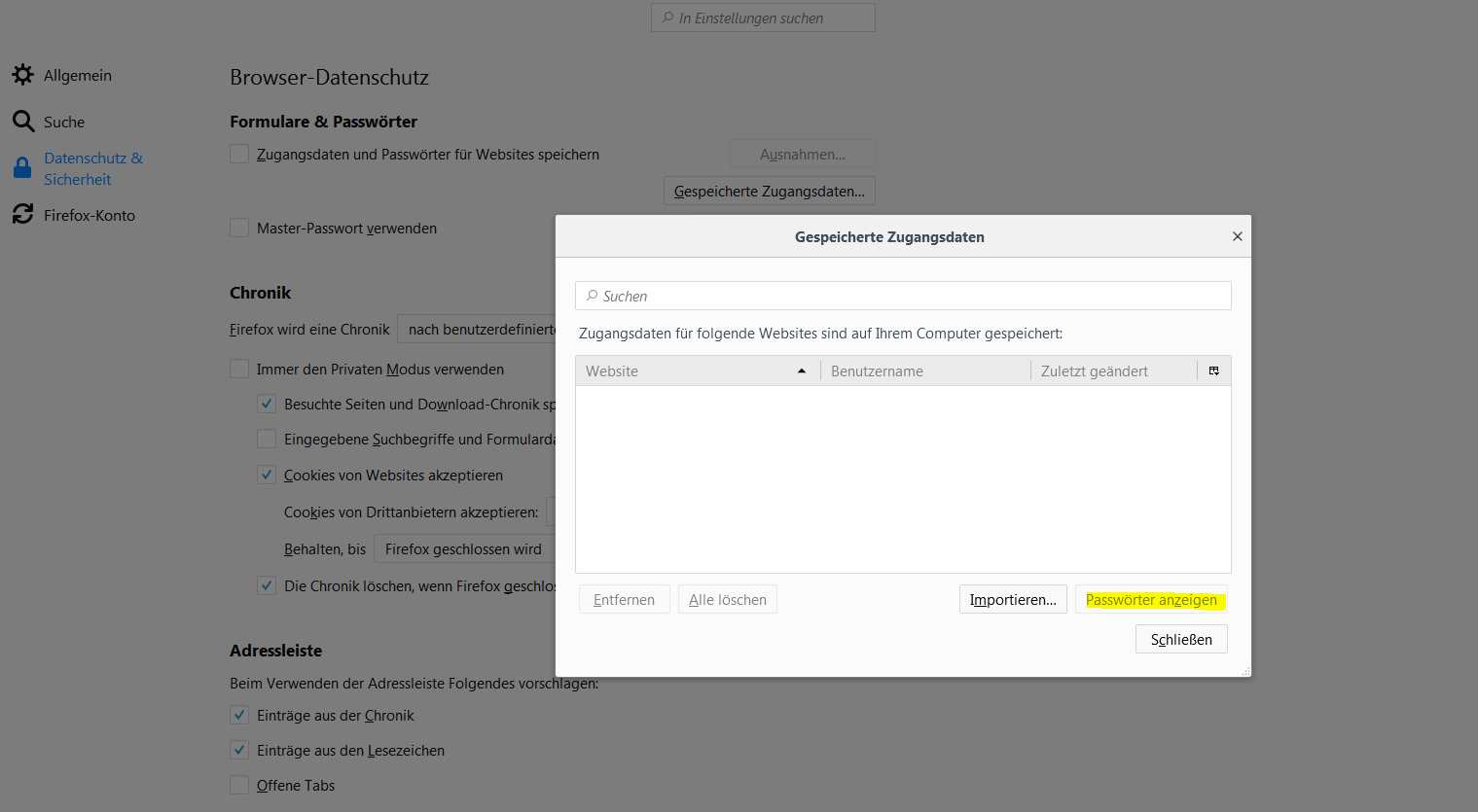 Hinweis: Hier auf dem Bild sind keine Passwörter vorhanden... -