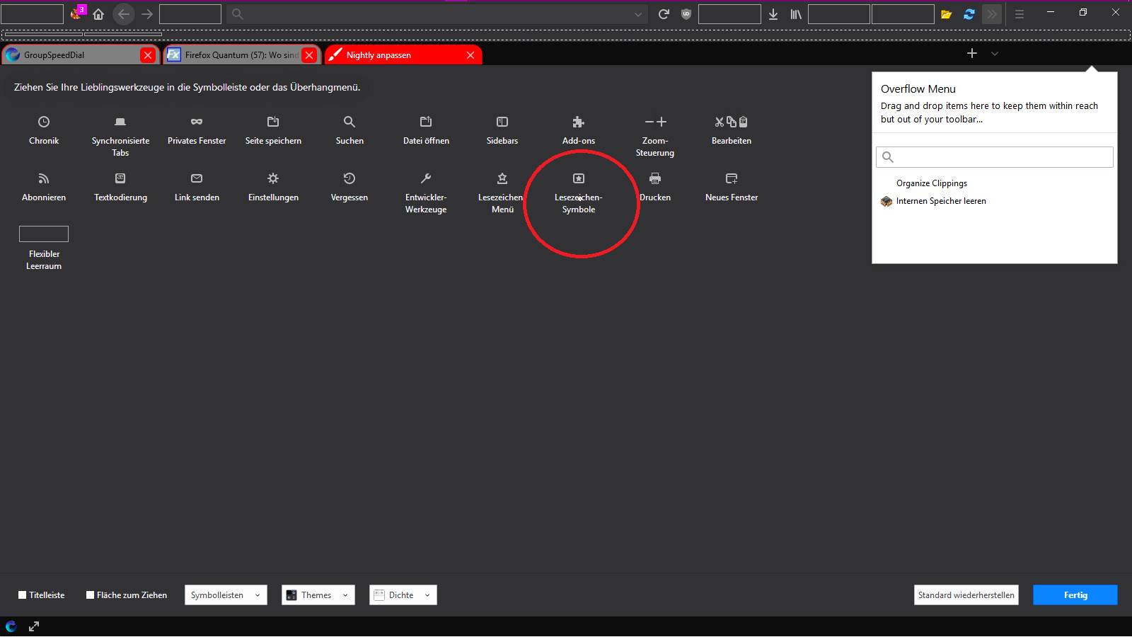 Dank an die Entwickler für die v57. Gefällt mir sehr gut - nur leider sind meine prall gefüllten Favoriten-Ordner nicht mehr zu sehen und in den Menüs finde ich sie nicht mehr. Sie sie weg oder suche ich falsch?