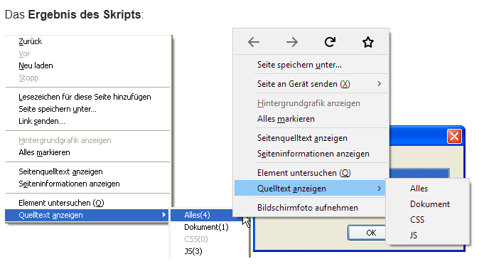 Im Kontextmenü erscheint auch die Option "Quelltext anzeigen" mit zugehörigem Dropout-Menü. Es tut sich aber nichts. Kann es sein, dass das Script "ViewSourceModoki" unter dem FF57 nicht funktioniert?