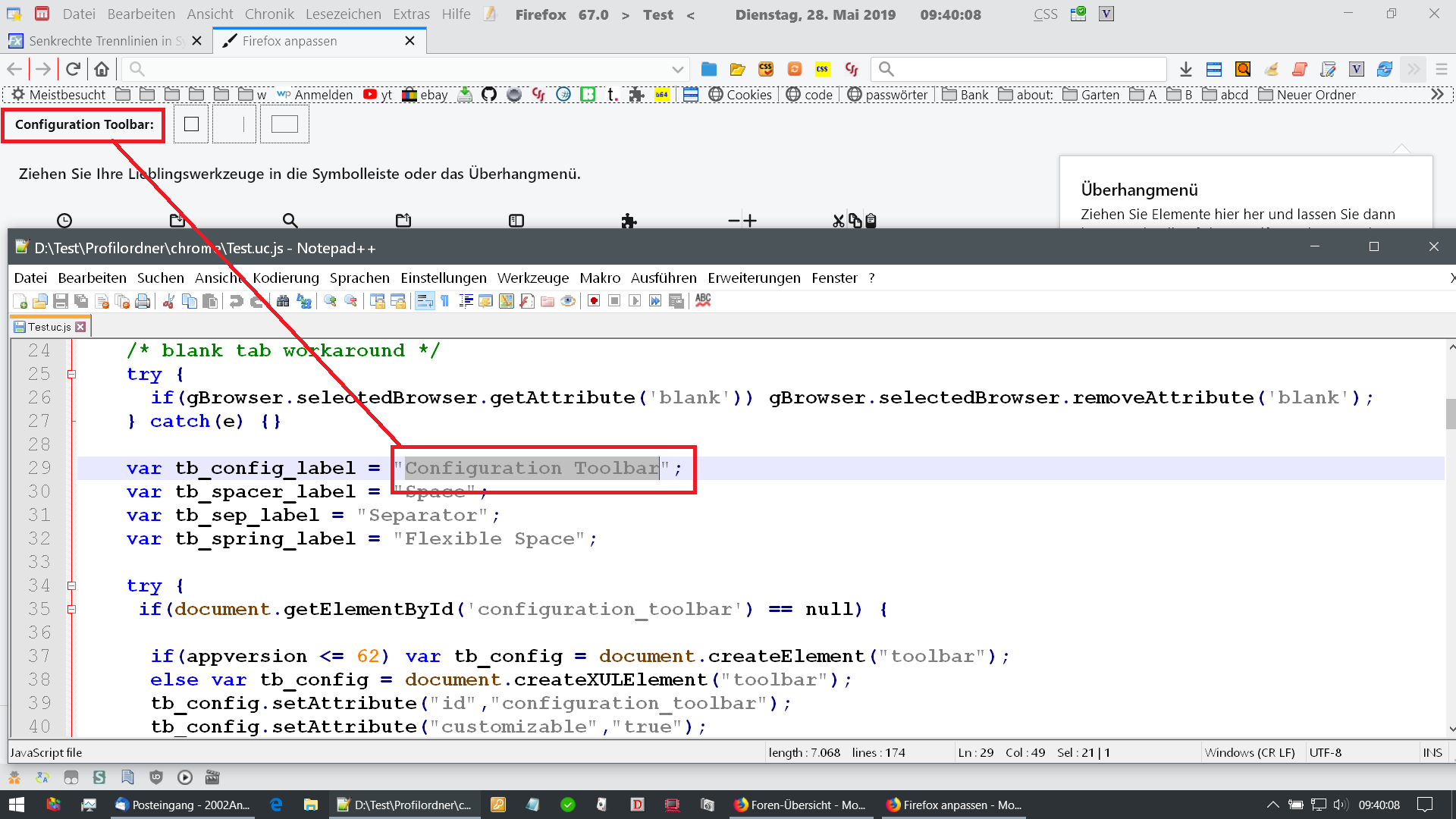 Firefox beendet, Script gelöscht, Firefox gestartet: Alle Symbole unter "Anpassen" weg, Trennlinien aber noch da!