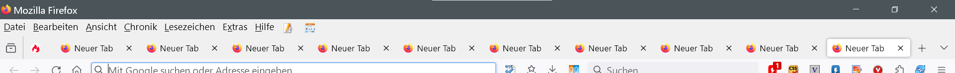 Korrekt verstanden, aber die Kreuze sind bei mir nur dann vorhanden, wenn nur wenige Tabs geöffnet sind. Ab sieben oder acht offenen Tabs gibt es das Kreuz nur noch im fokussierten Tab.