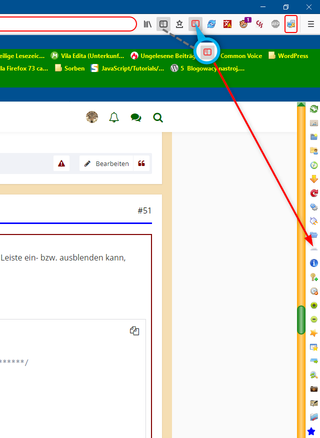 Zu deiner Frage in #19 die 2 "Pfeile" ist die Lesezeichen Symbolleiste die hatte ich mir dort über Anpassen