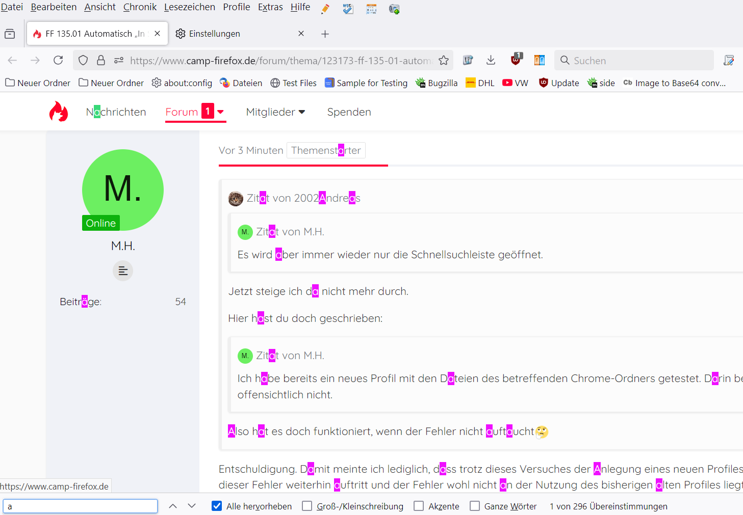Ich habe bereits ein neues Profil mit den Dateien des betreffenden Chrome-Ordners getestet. Darin besteht der Fehler offensichtlich nicht.
