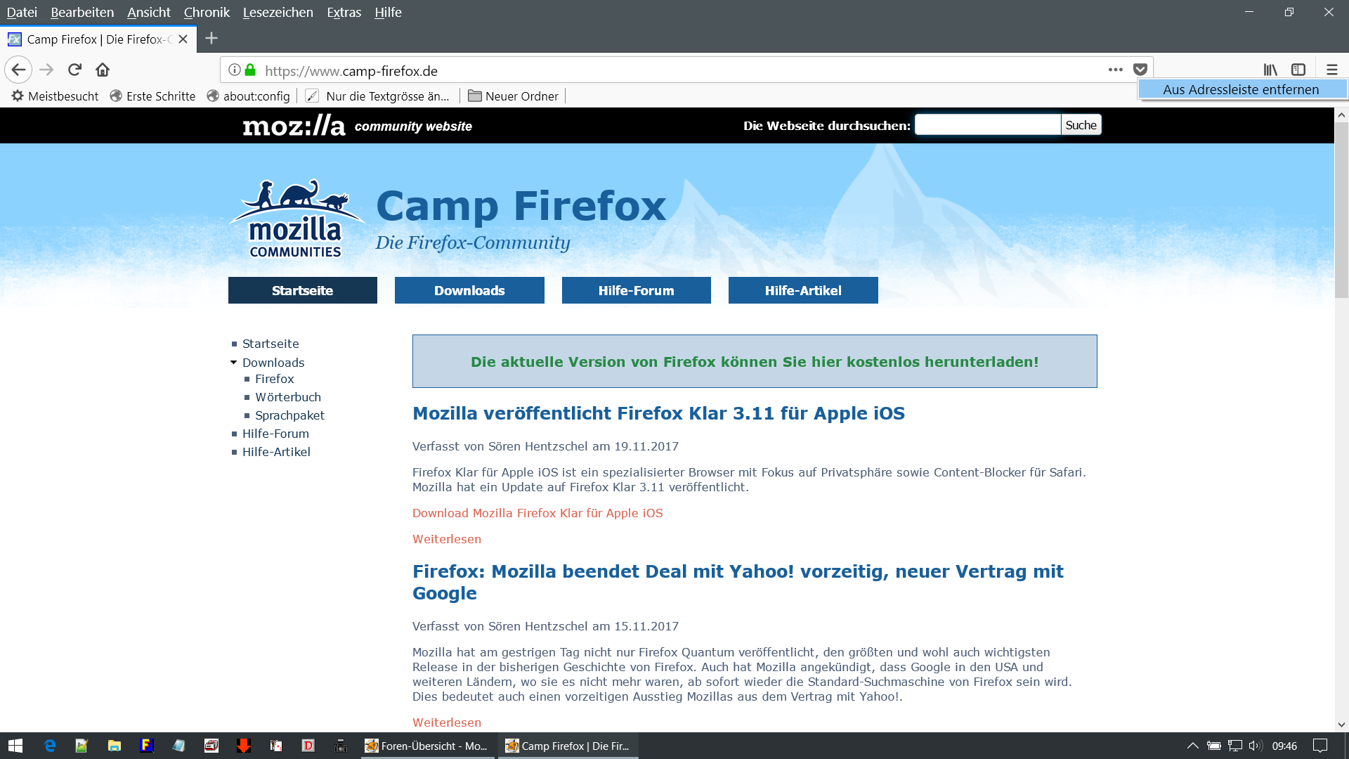 man kann ja per Rechtsklick auf das Icon in der Adressleiste dieses ausblenden: