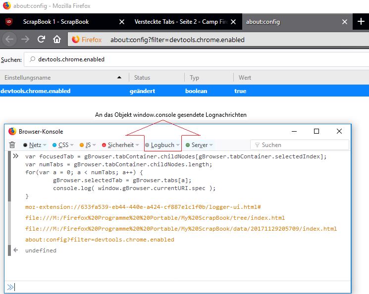 Schalte den Wert von false auf true. Starte die Browser-Konsole und Füge den Code von Beitrag #17 ein >> Enter. (Logbuch) Gruß, der_nachdenklicher
