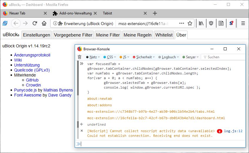 ich uBlock Origin - Dashboard angezeigt. Dies aber ohne sichtbaren Tab. Gruß, der_nachdenklicher
